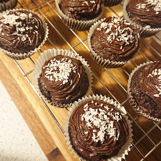My latest experiment is a chocolate muffin with a twist, coconut!